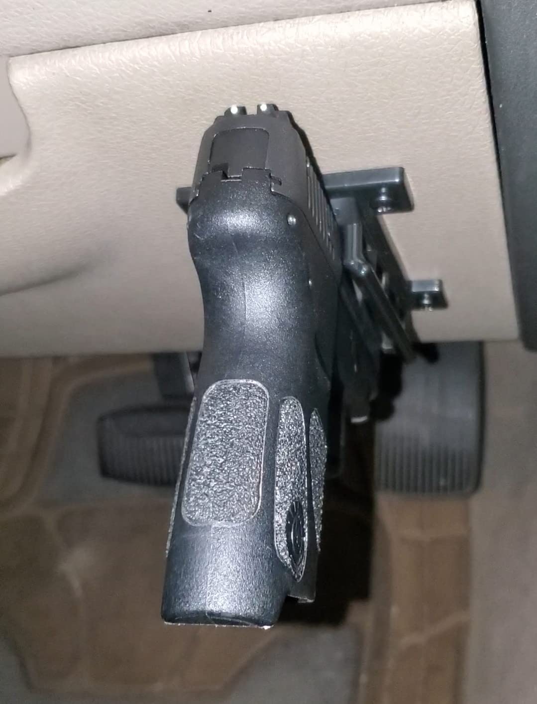 Its high-grip magnetic design, made in the USA, holds flat top handguns in cars, homes, or offices, with a scratch-free coating for protection.