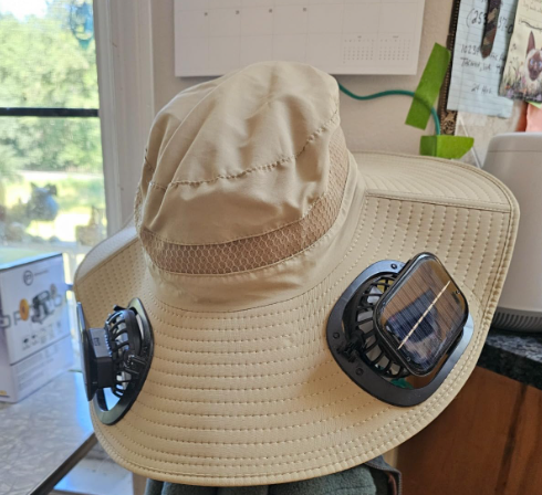 Its solar-powered fan with adjustable speeds delivers instant cooling, while the 4.72-inch brim protects against UV rays.